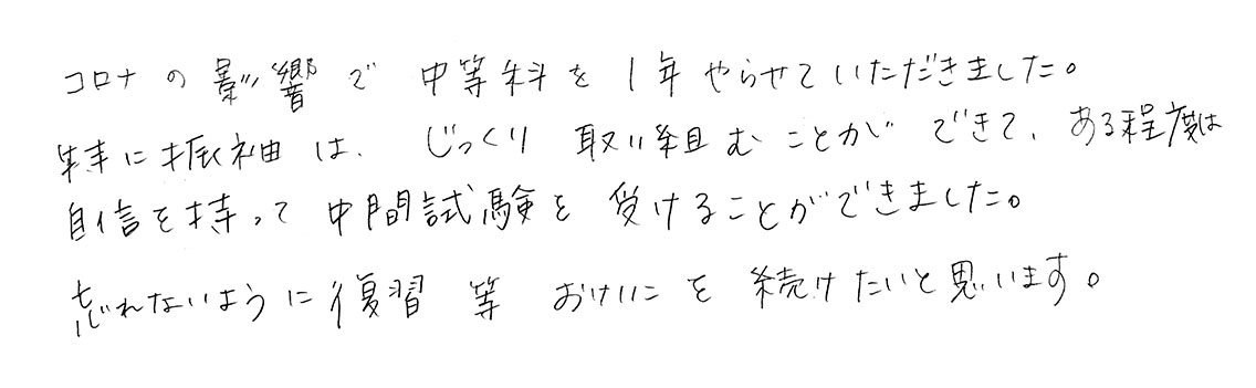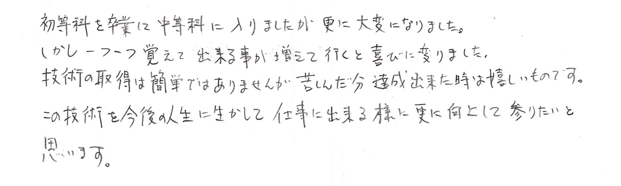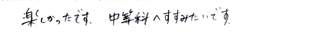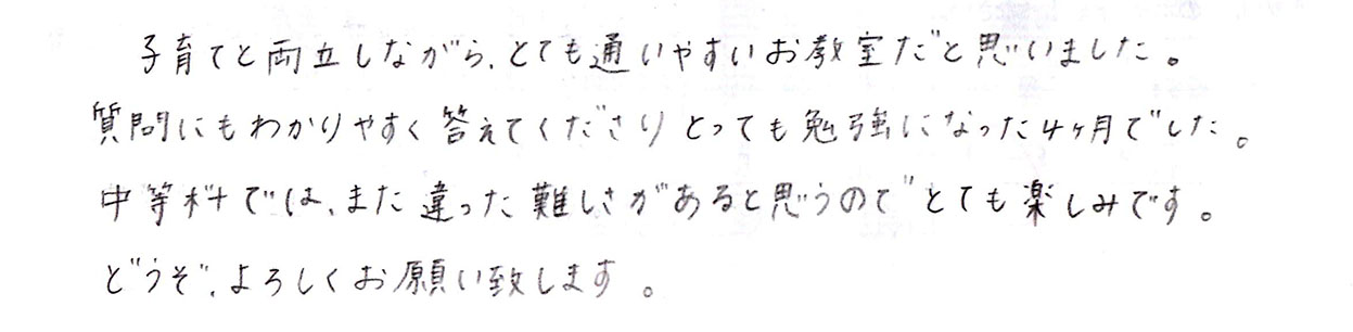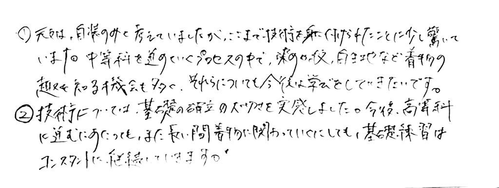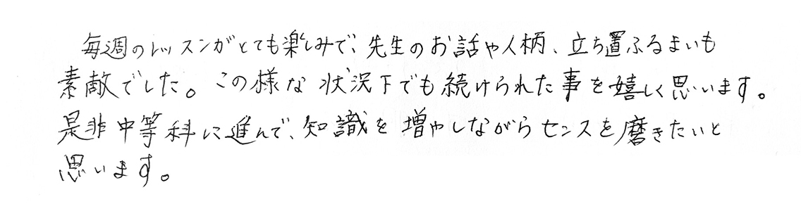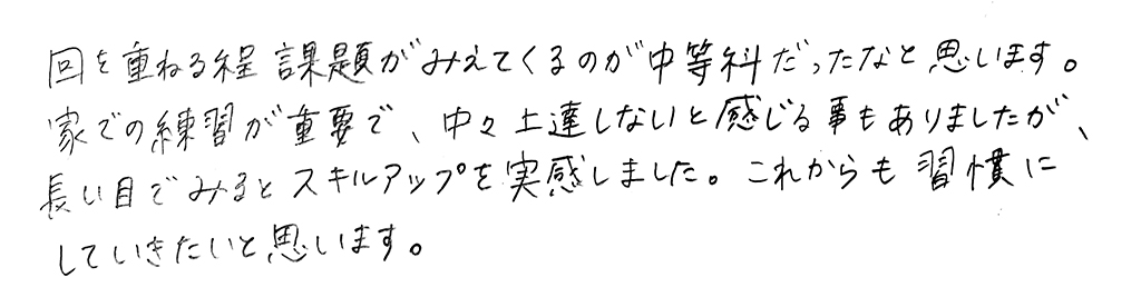 以下は、初等科、中等科のコース修了時に記載していただいたご感想を口コミとして掲載いたしました