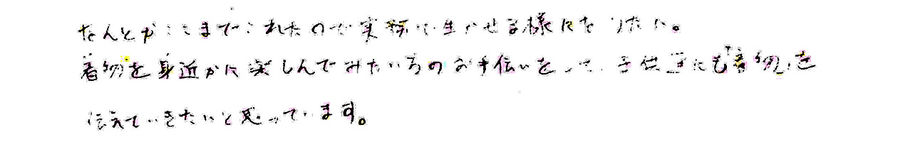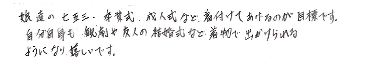 「家族、友人に着付けのお手伝いをしながら、着物の良さを広めたい。。」