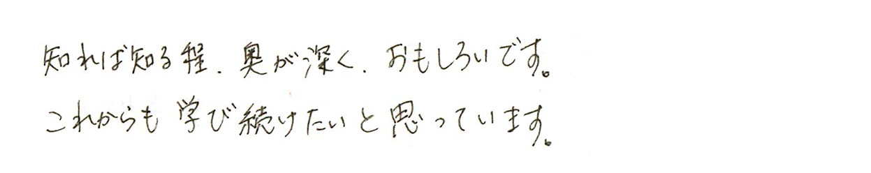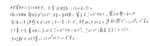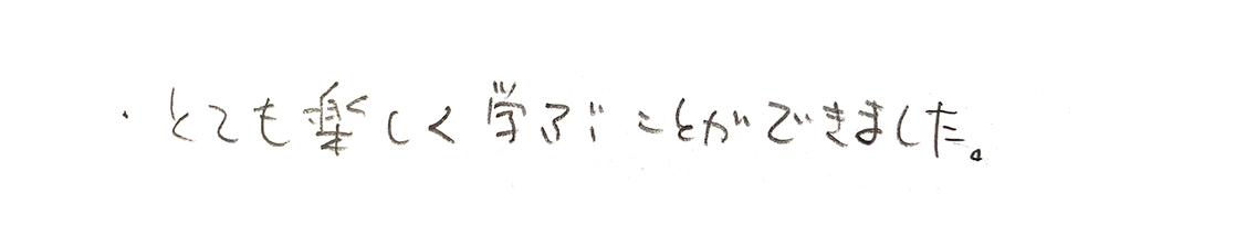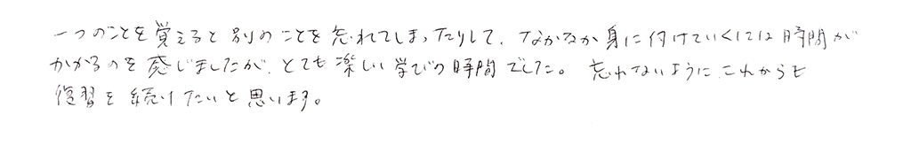 「身に着けていくには時間がかかるのを感じましたが、とても楽しい学びの時間でした。」