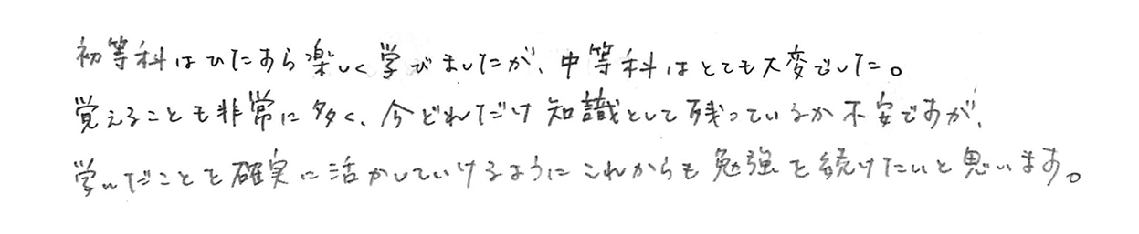 東京都 八王子市 中等科卒業時のコメント(2016年8月)