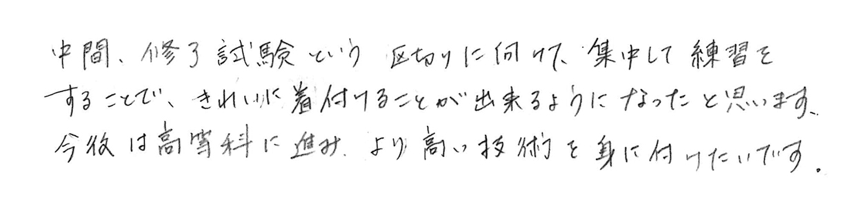 「3月の卒業式では着られるようにこれからも自習を続けたいと思います。」