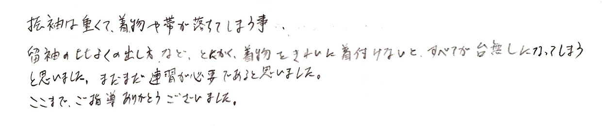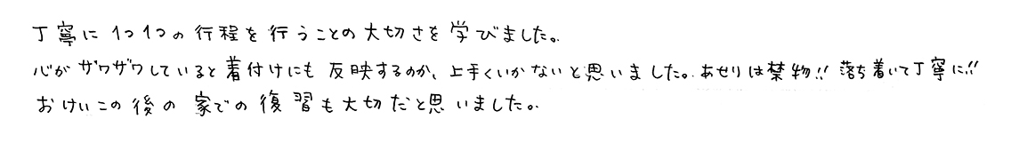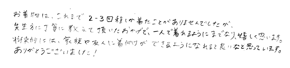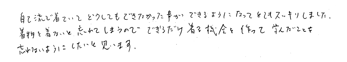 「細かいポイントを意識するときれいに着られるようになるのがとてもうれしく楽しかったです。」