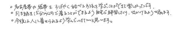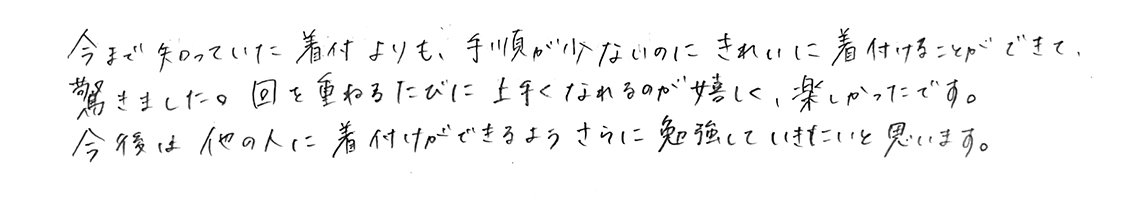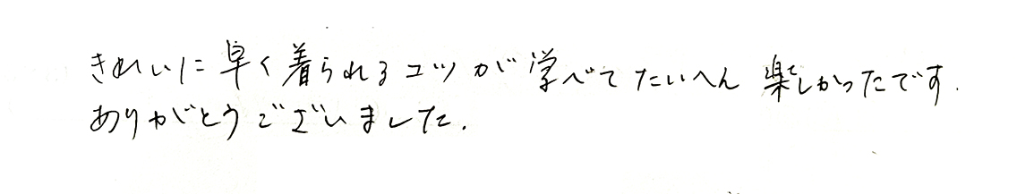 「きれいに早く着られるコツが学べてたいへん楽しかった」