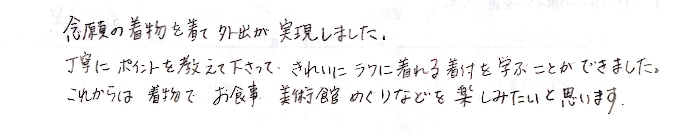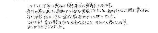 「長年の夢…「着物で外出」も実現できました。はじめて外出した際に着くずれなく帰宅できたときは達成感と喜びでいっぱいでした。」