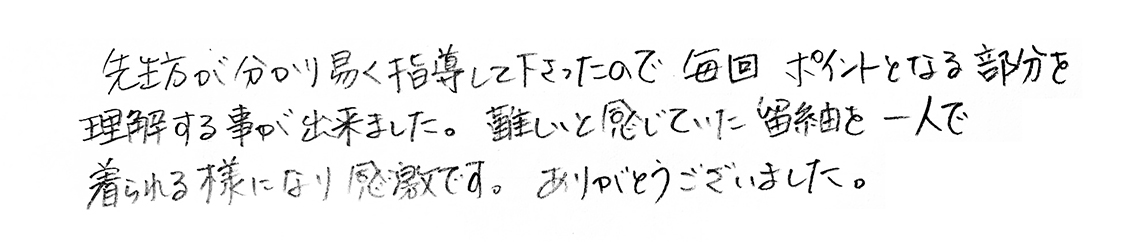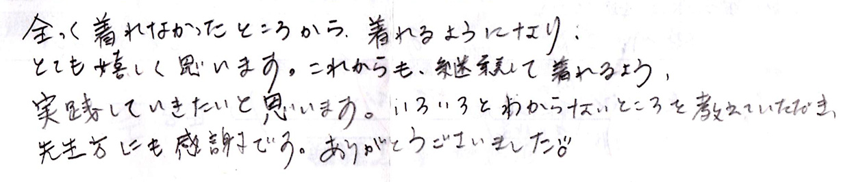 「きれいに着るポイントをその都度教えていただき、わかりやすかったです」