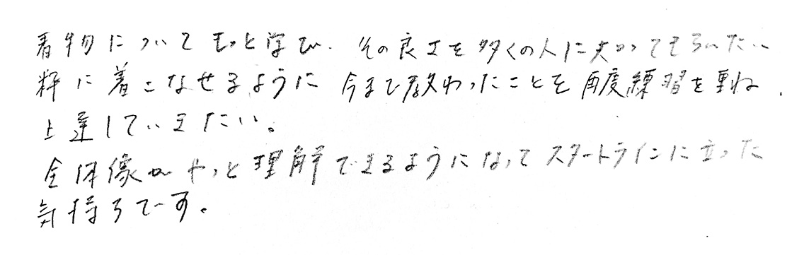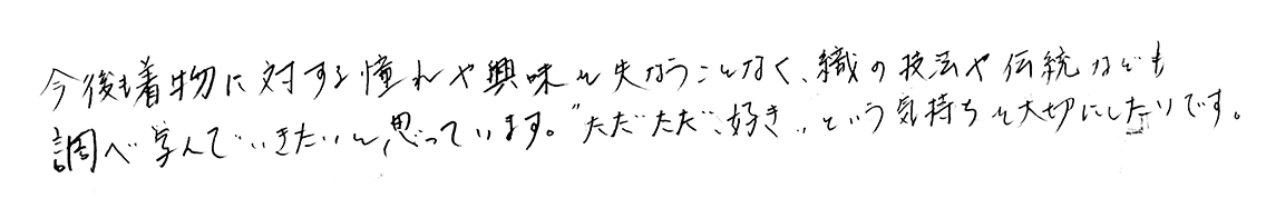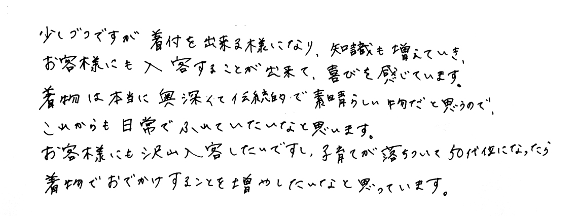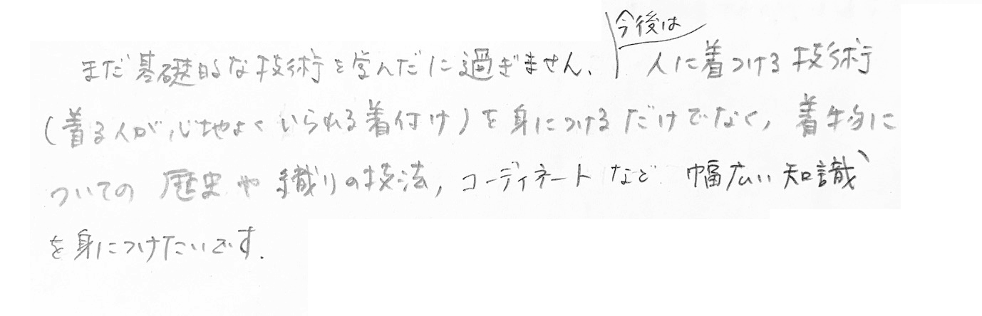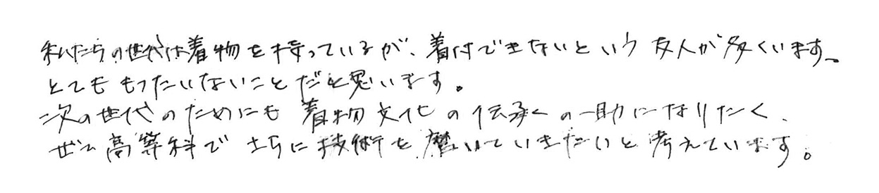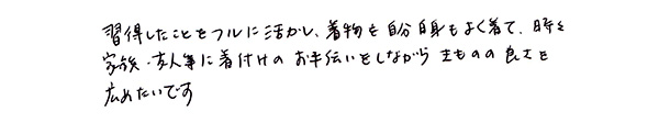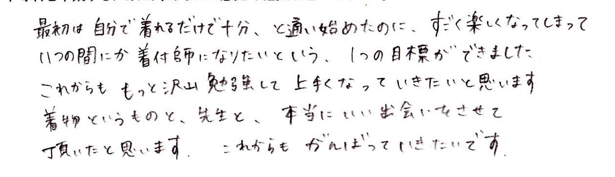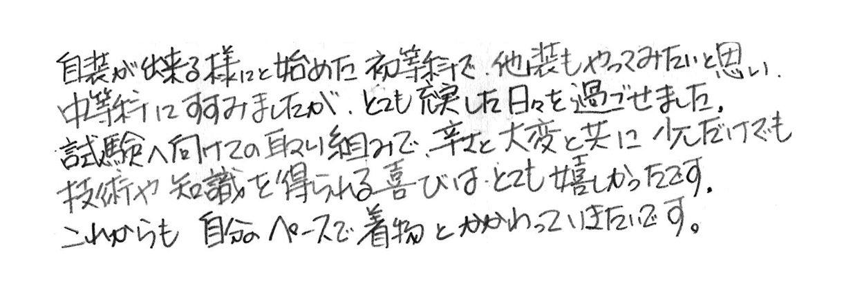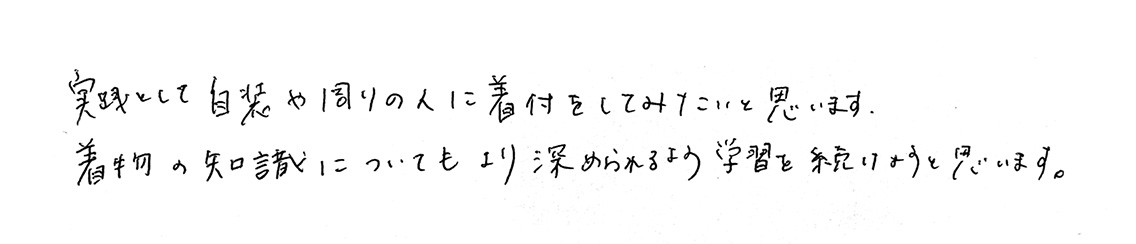 「他装を学ぶことでより着物が好きになりました。この後も着物に関わっていきたいと思います。」