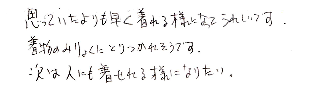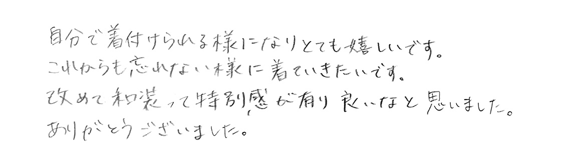 「自分で着られることがとても嬉しい!もっと練習して上手くなります。」