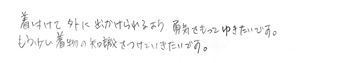 「着付けて外に出かけられるように勇気をもってゆきたいです」