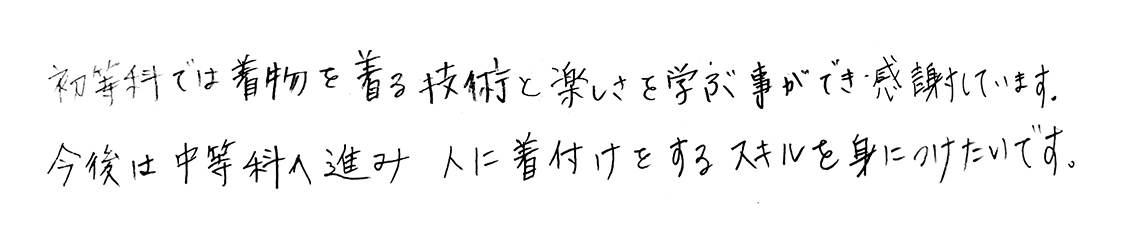 「初等科を修了するまでにひとりできちんと着付ができるようになったのは、直接先生方に教えてもらったおかげです。」