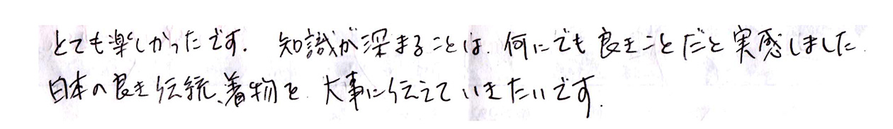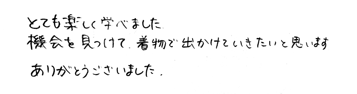 「楽しく学びました。機会を見つけて着物で出かけていきたいです」
