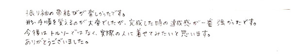 「手順を覚えるのが大変でしたが、完成したときの達成感が強かったです。」