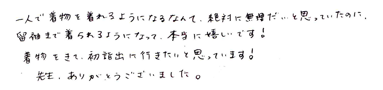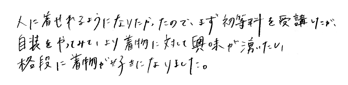 短い期間で自分できちんと留袖や普段の着物が着れるようになったので、とても満足しています。
