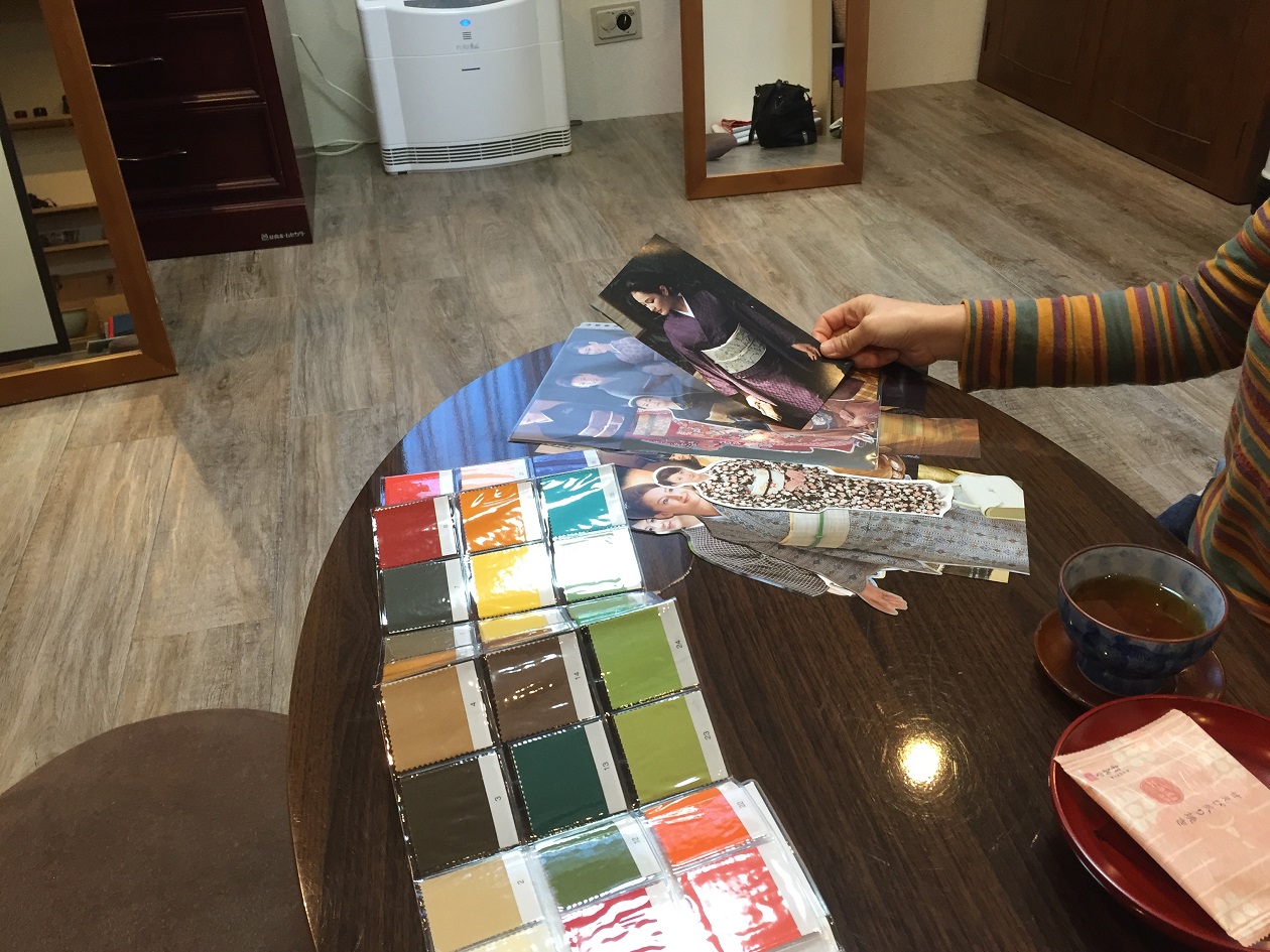 4シーズンのカラー診断をベースに、お似合いの色、柄、着付け方法まで、マンツーマンでご指導いたします。効果的な色半襟の使い方は、目からうろこですよ!