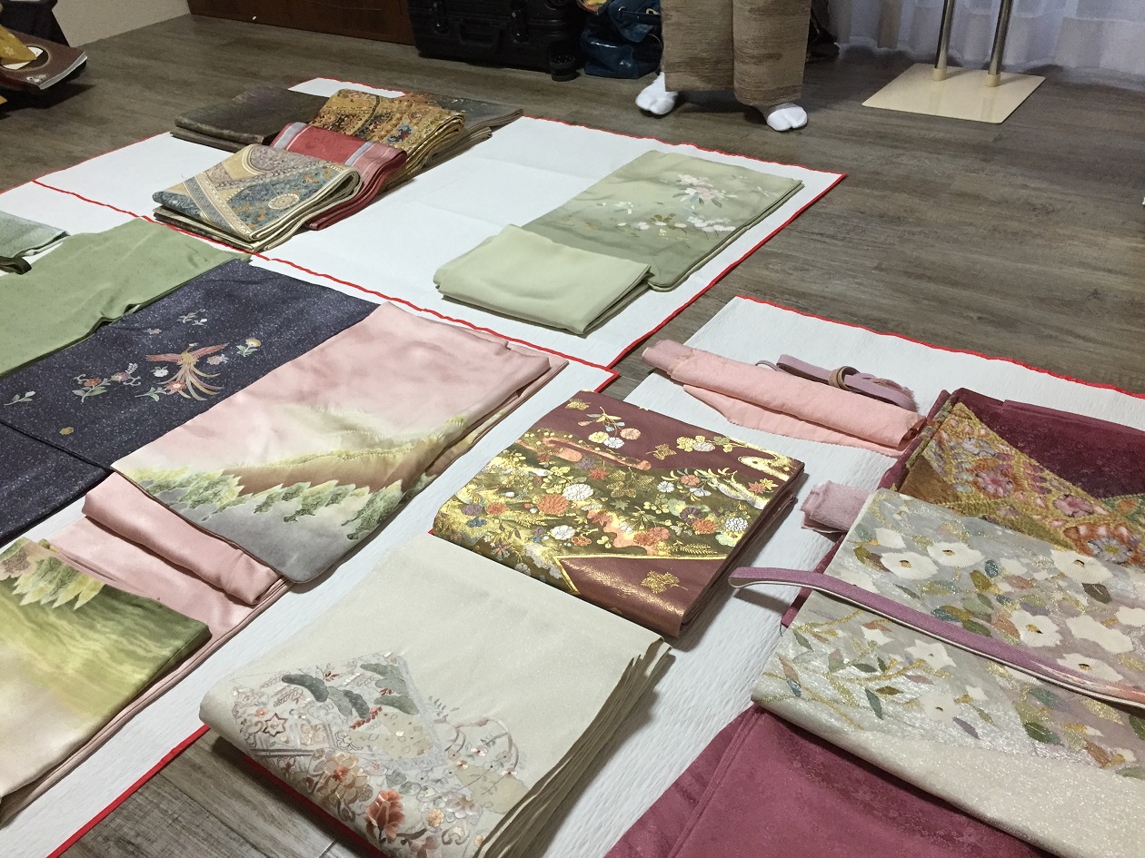 2回目(90分)~着物や帯を持参してもらって、コーディネート実践をします。
