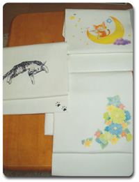 写真の帯は、生徒さんが実際に制作されたもの。左は、愛猫をデッサンしたもの。右上は、プロのイラストレーターさんによるものを、帯(許可済)にしました。右下は、生徒さんのオリジナルデザイン。手描タッチに彩色されています。